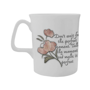 The "Perfect Moment" message reminds you to pause and appreciate life's beauty. Busy schedules often rush past opportunities for mindful appreciation and gratitude. This mug encourages you to slow down and savour precious moments.