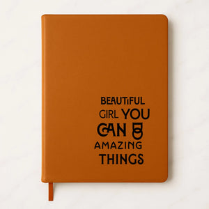 Transform Your Daily Routine with our Premium Engraved PU Leather A5 Notebook This premium A5 notebook combines elegant design with meaningful functionality. Every page invites you to explore your thoughts and dreams. The laser-engraved cover features carefully selected inspirational words. These uplifting messages serve as daily reminders of your potential. Each time you open your A5 journal, ... read more